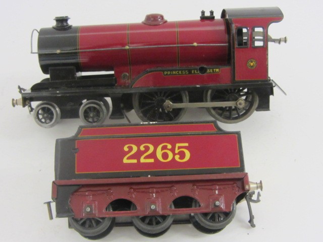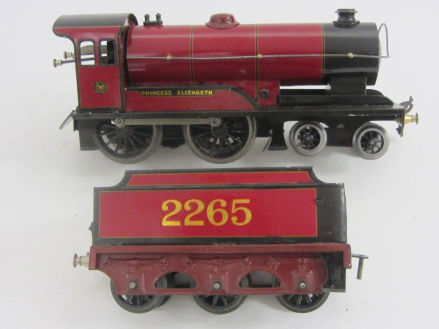 LOT 19709: Bassett-Lowke Gauge 0 Clockwork 4-4-0 Red "Princess Elizabeth" Locomotive and Tender