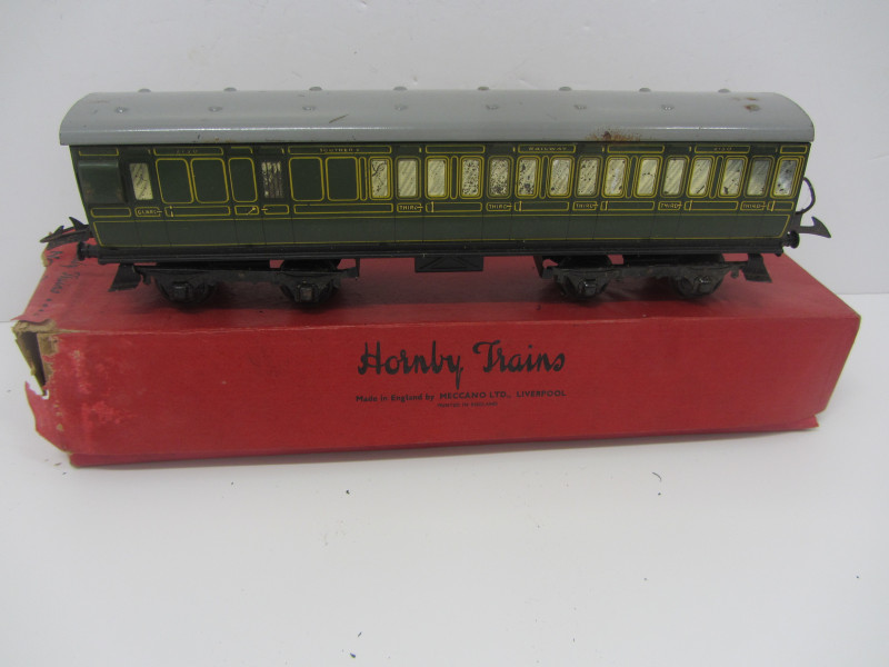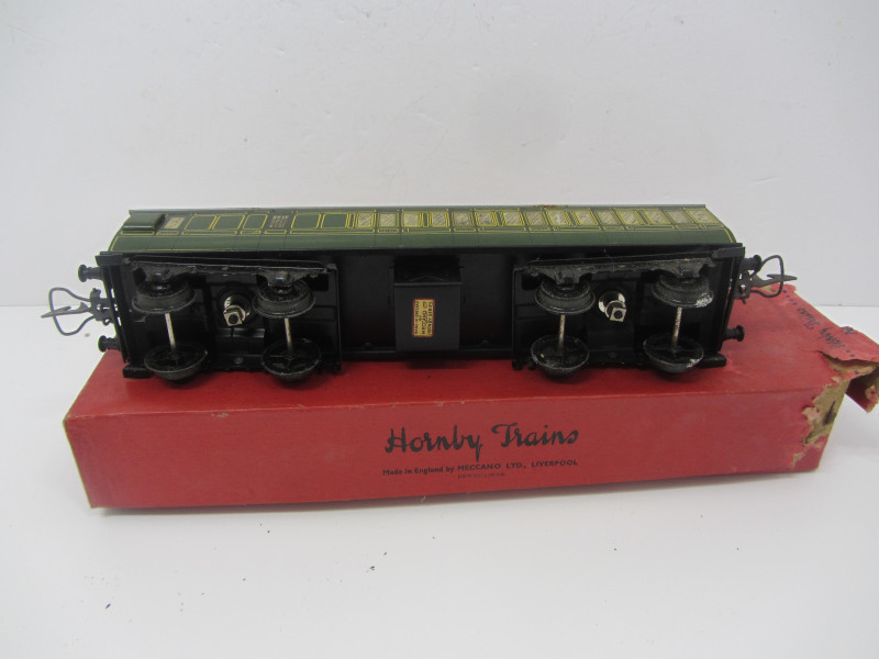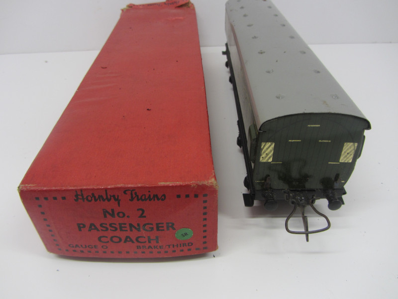 LOT 42987: Scarce Postwar Hornby Gauge 0 SR No2 Brake Third Passenger Coach Boxed