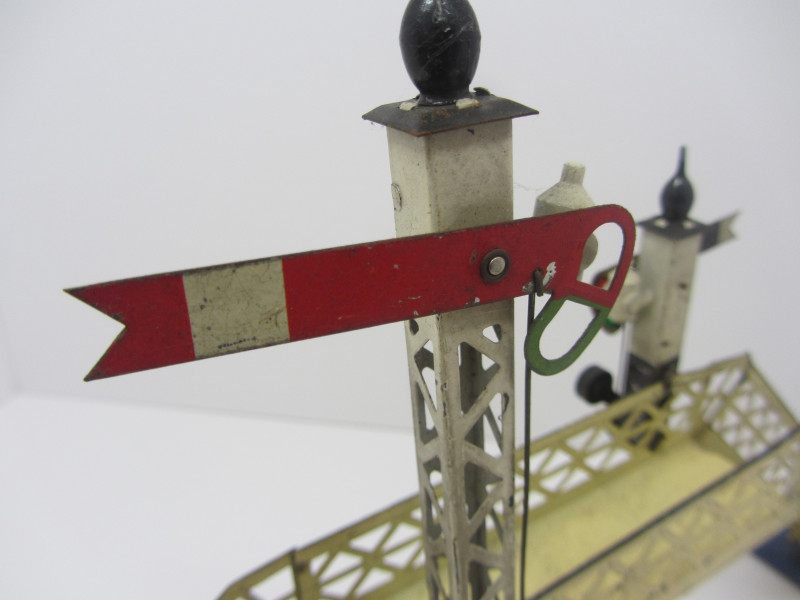 LOT 43257: Early Hornby Gauge 0 No2 Lattice Footbridge with Signals