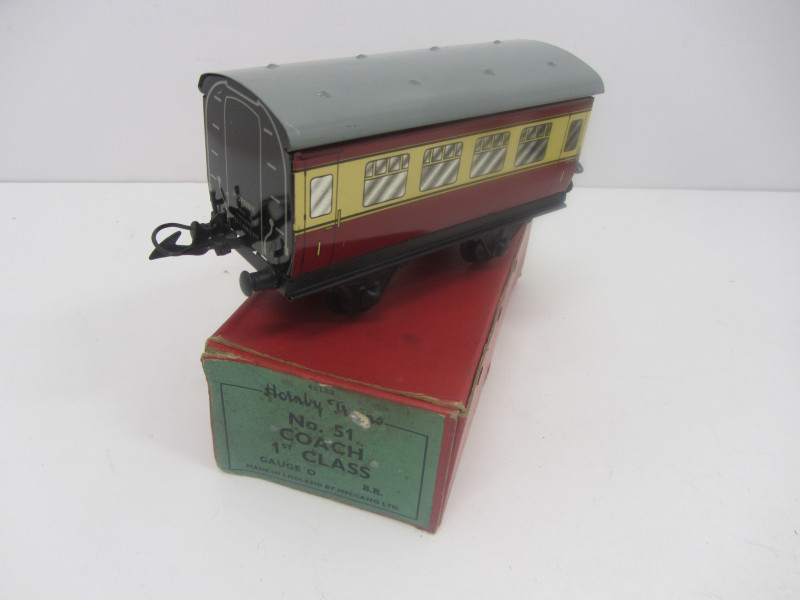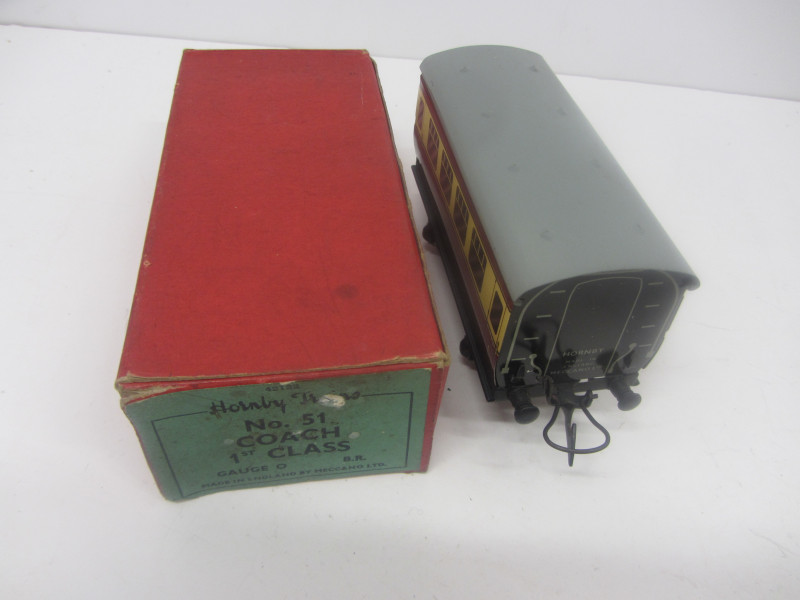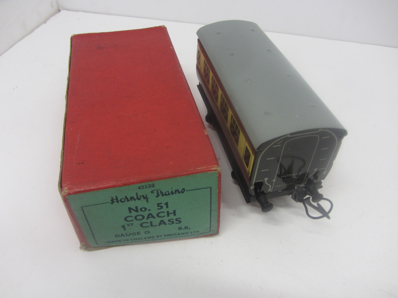LOT 43102: Postwar Hornby Gauge 0 No51 BR First Class Coach Boxed