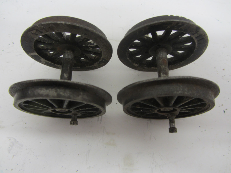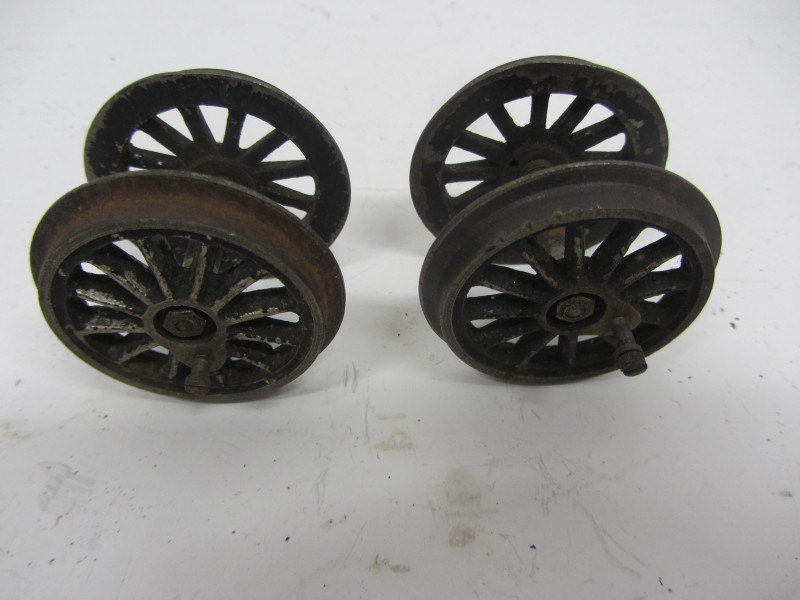 LOT 44064: Set of 4 Bing Gauge 0 Locomotive Driving Wheels with Axles