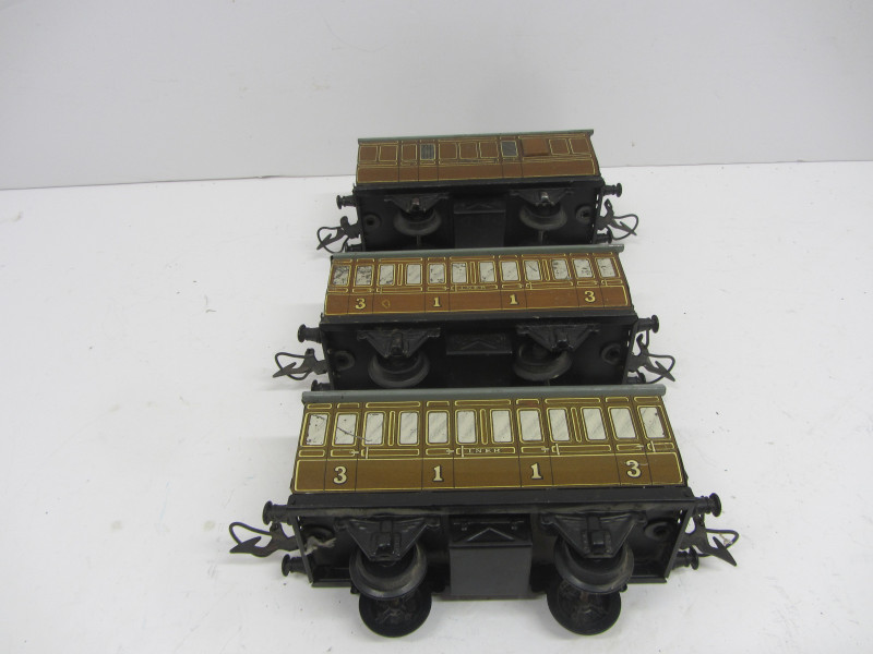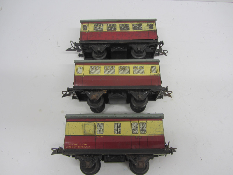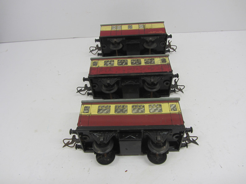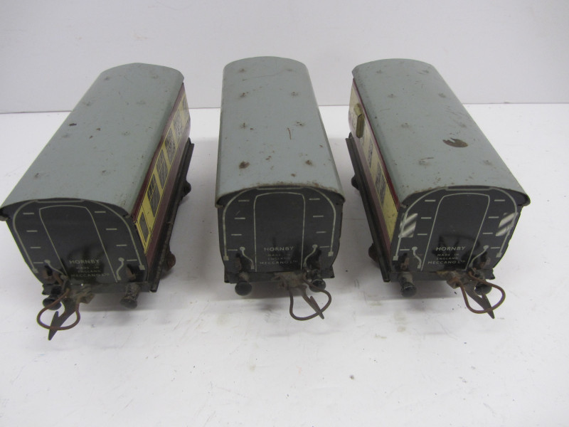 LOT 44068: Rake of 3 Postwar Hornby Gauge 0 No51 Coaches