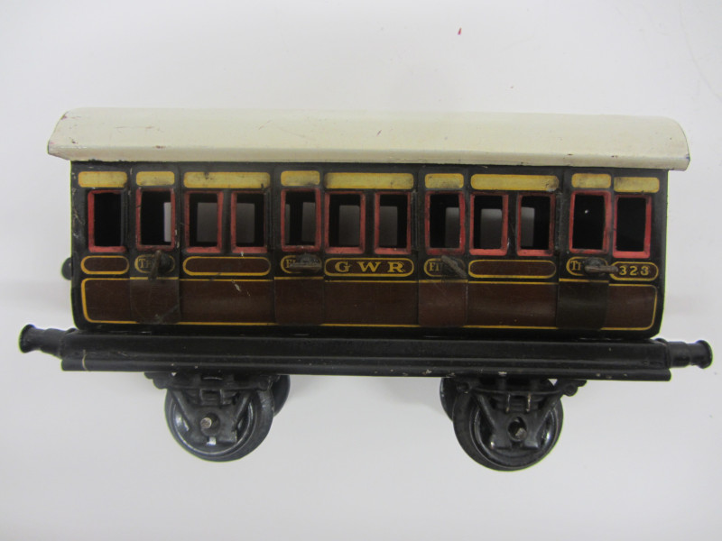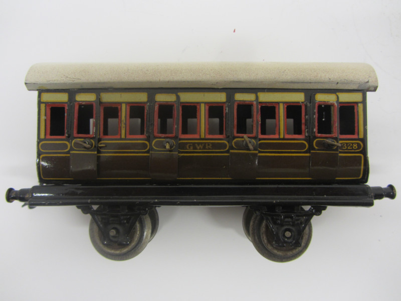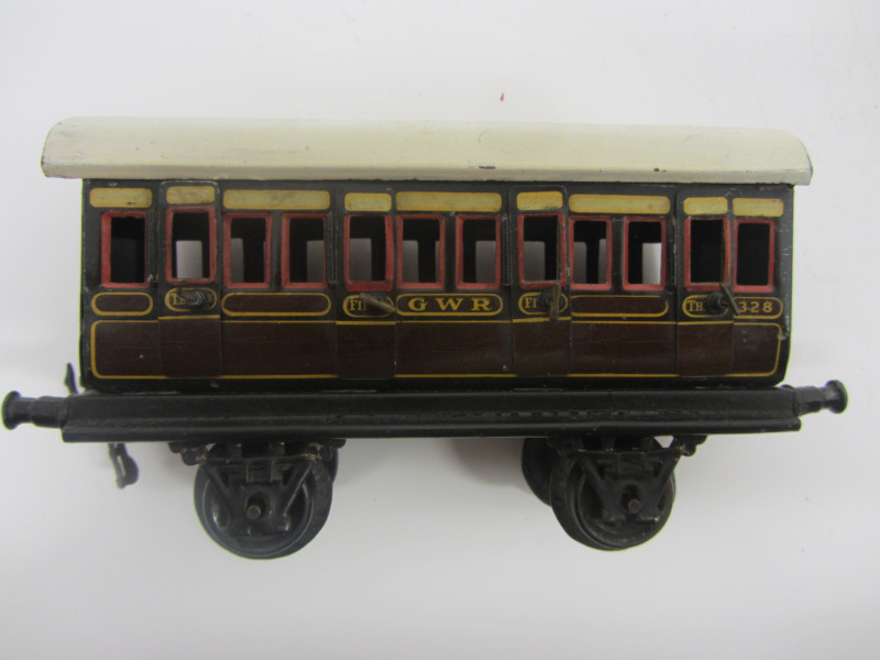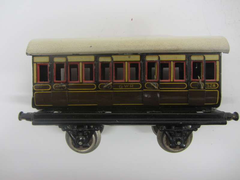 LOT 43392: Bing Gauge 0 GWR 1st/3rd Passenger Coach No 328
