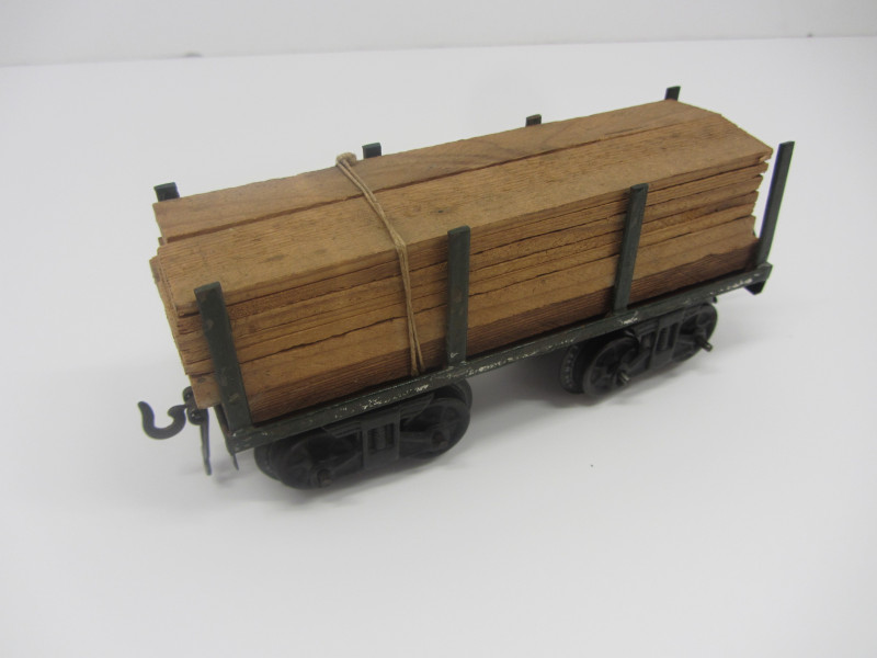 LOT 43373: Scarce Early Bing Gauge 0 Hand Enameled Bogie Timber Wagon