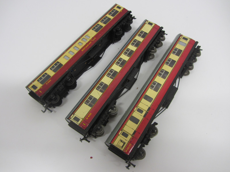LOT 44000: 3 Hornby Dublo Blood and Custard Coaches